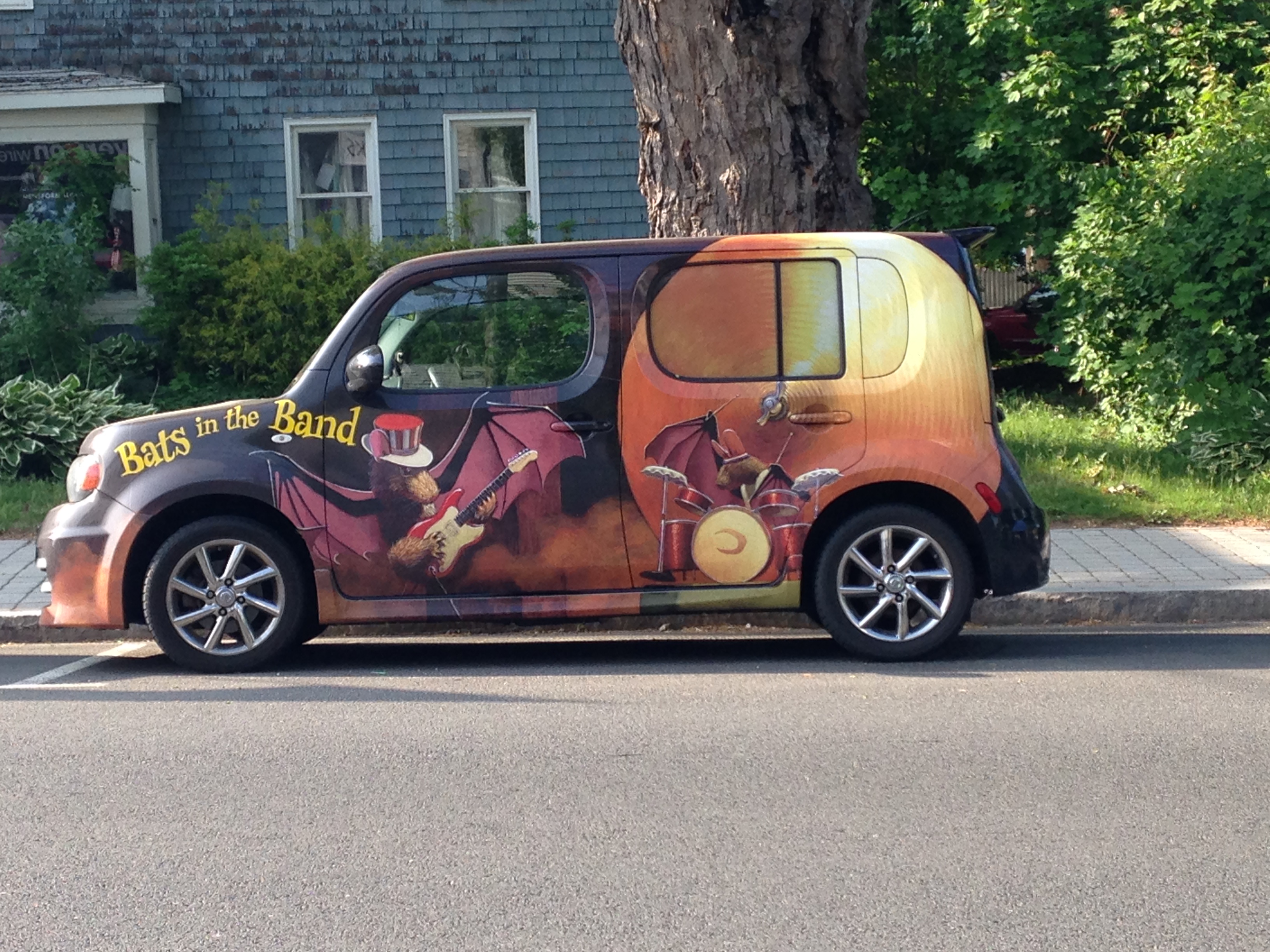 It’s Brian Lies’ bat car for his current book tour (which, by the way, is an AWESOME idea). He had stopped by our bookstore to sign some more copies of his books. So not only did we get a Brian Lies book, we got one with a personalized inscription for Aidan.